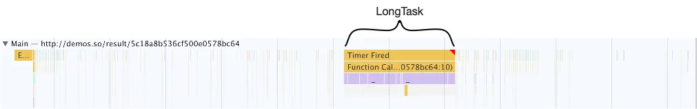 可以看到每个小任务中间是有空隙的,代表着任务执行了一小段时间后,将让出主线程的控制权,让浏览器执行其他的任务。